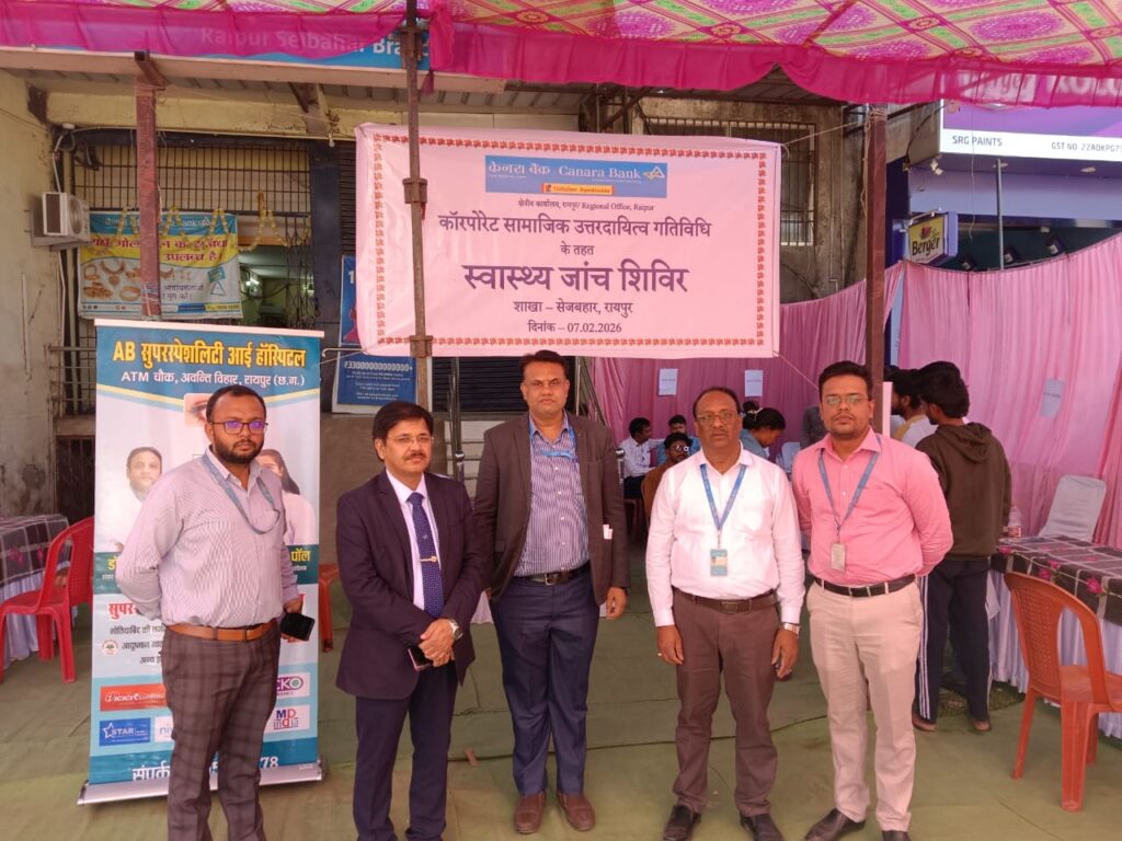 7 फरवरी, 2026 को केनरा बैंक की सेजबहार शाखा द्वारा अपनी कॉर्पोरेट सोशल रिस्पॉन्सिबिलिटी (CSR) पहल के तहत एक मेगा हेल्थ कैंप का आयोजन किया गया।